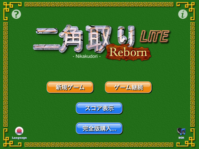 麻雀牌を使った定番パズルゲーム。 「二角取りReborn HD」LITE版(無料) 1990年:MacOS版「二角取り」・「二角取りFINAL」から20年、 麻雀牌パズル「二角取り」がiPadゲームとして生まれ変わりました。