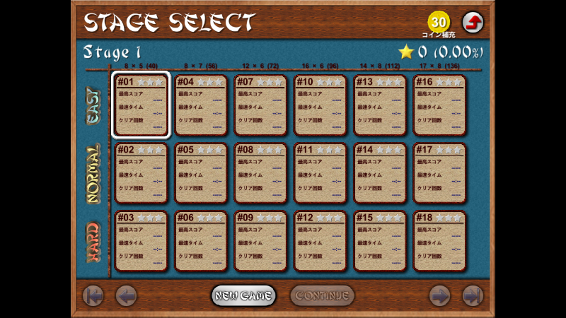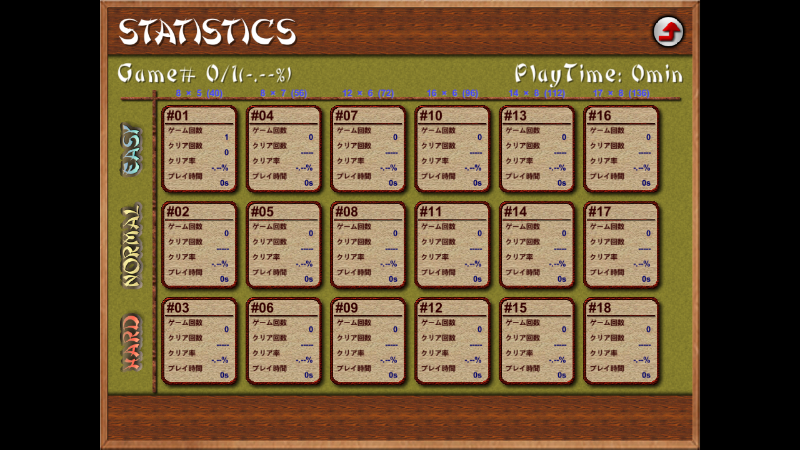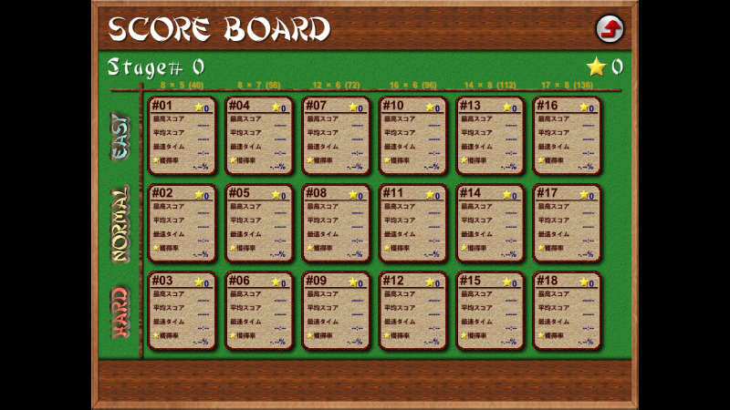 18 different game difficulty levels: easy, normal, difficult, × tile arrangement size